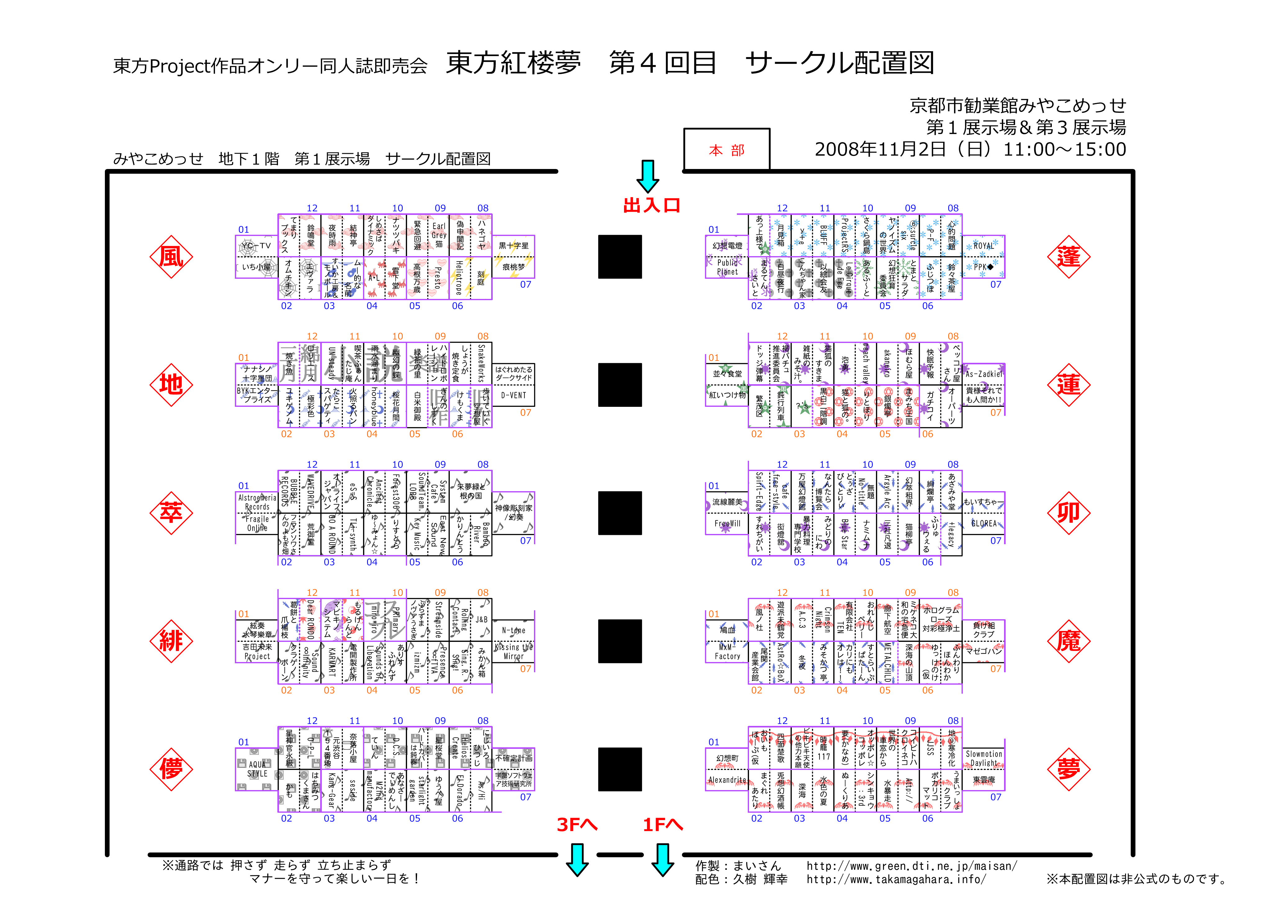 申し訳ありませんが、現在takamagahara.infoドメイン下で公開してゐるものは全て仮完成版でして、実際は魔理沙島等に誤りを含んでゐます。色付き配置図に関しては明日(今日)中には大至急修正いたしますので、今のところは「プレビュー版」「人柱版」だとお考へください。