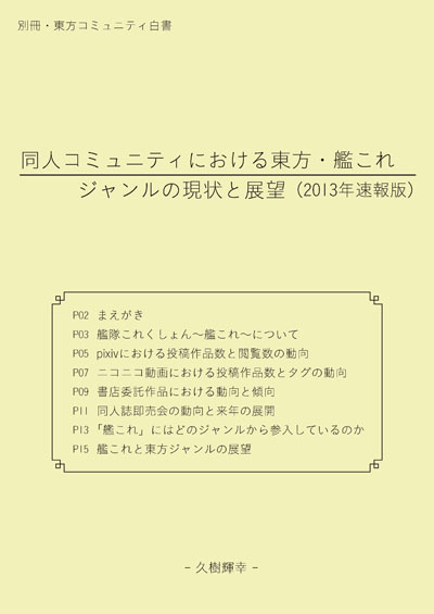 - 同人コミュニティにおける東方・艦これジャンルの現状と展望(2013年速報版)